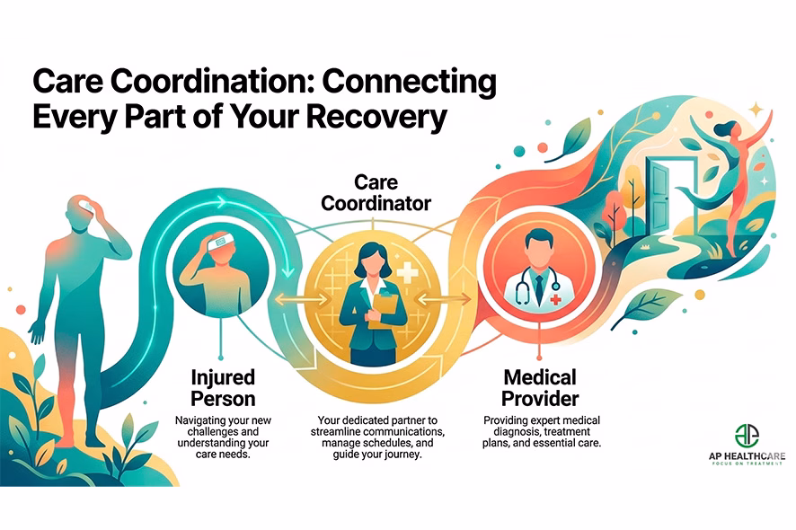 When done well, care coordination removes the logistical burden from everyone involved and keeps the focus where it belongs — on the injured person’s recovery.